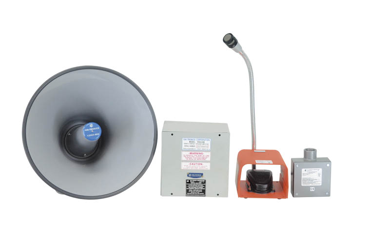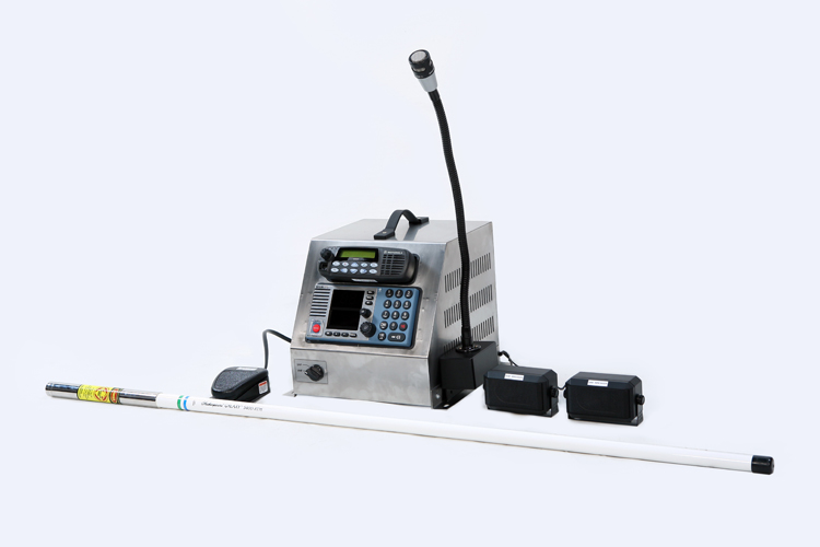 Hands-free public address systems are designed to minimize the movements of hands for safety purpose. Communication is enabled using a foot switch and a gooseneck microphone. The instruction/command is aired over outdoor speakers to the deck floor to draw attention or to relay instructions.